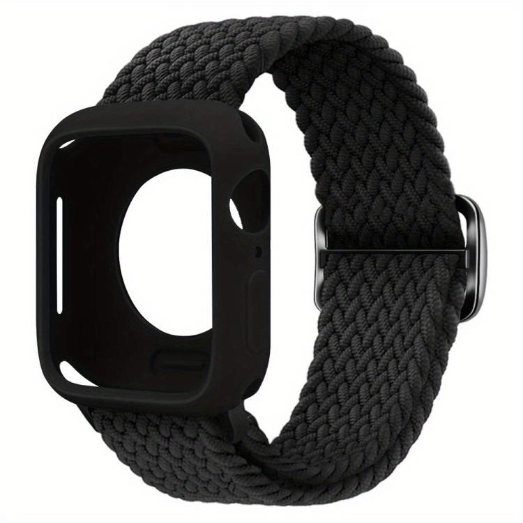 Correa de nailon con hebilla de escalera y funda de silicona para Apple Watch de 40 mm/41 mm (negra)