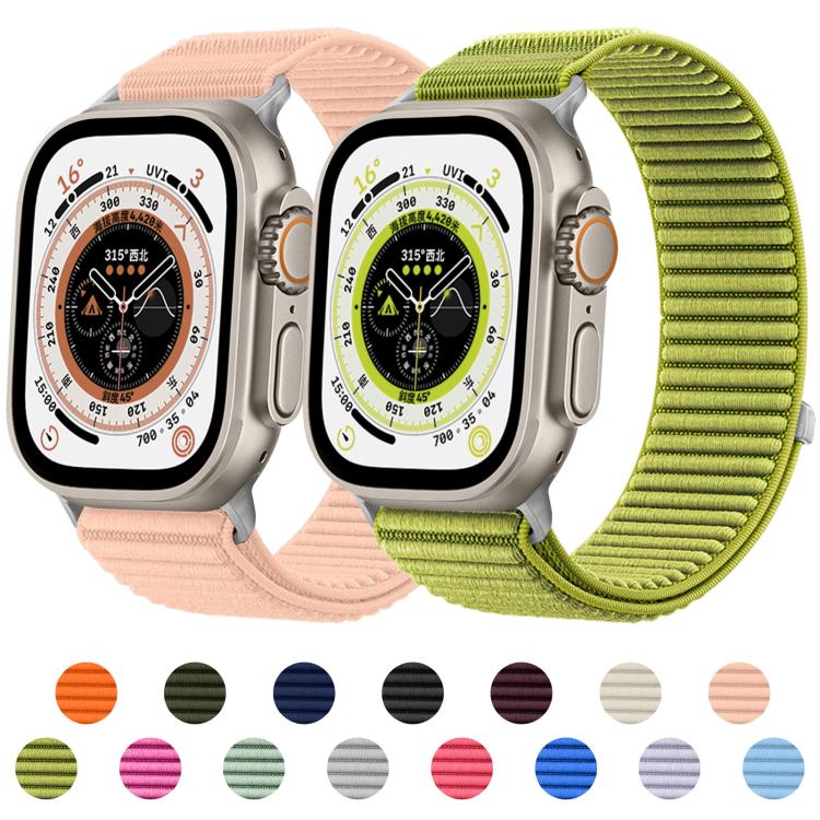 Correa de nailon tejido con cierre de velcro y interfaz metálica para Apple Watch de 46 mm, 49 mm, 45 mm y 44 mm (verde abeto)