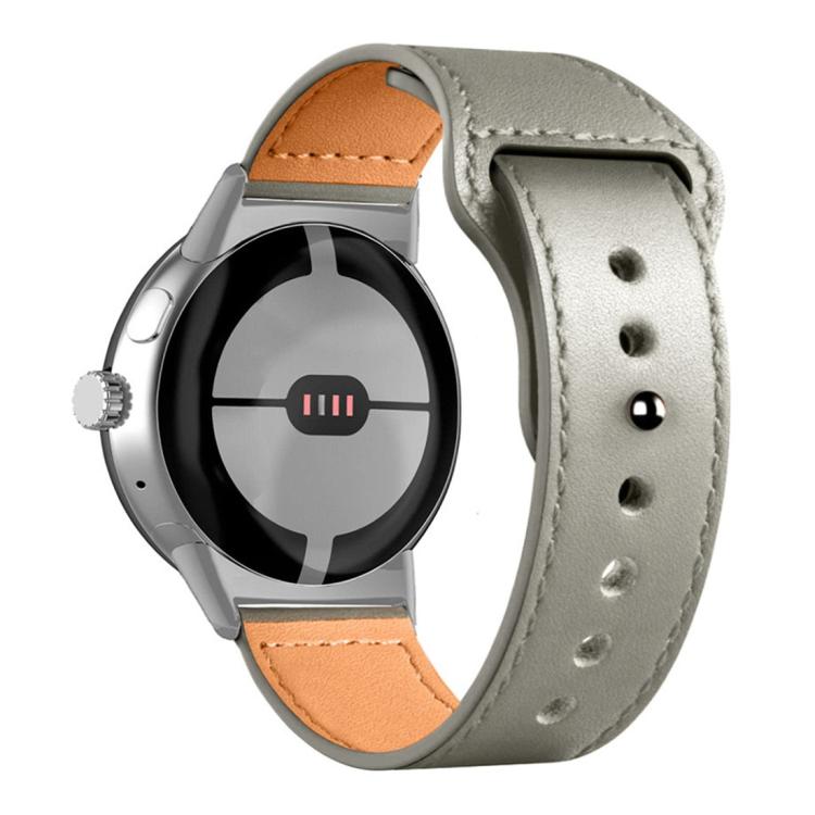 Correa de piel auténtica con hebilla invertida de 41 mm para Google Pixel Watch 4 / 3 / 2 / 1 (gris claro)