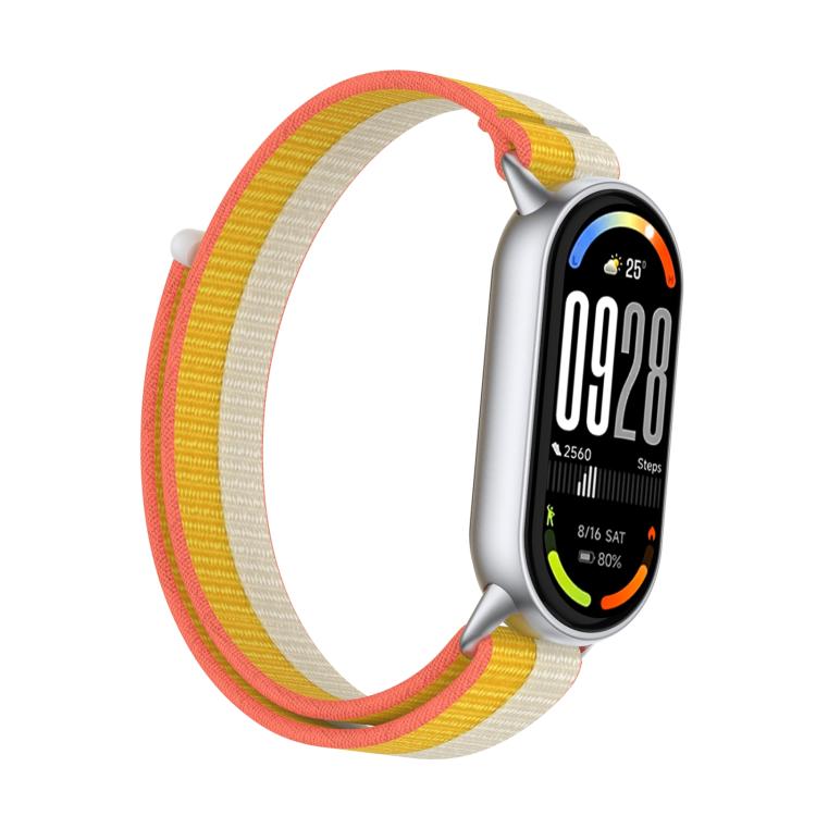 Correa de reloj con cierre de velcro de nailon integrado para Xiaomi Smart Band 10/9/8 (blanco mijo)