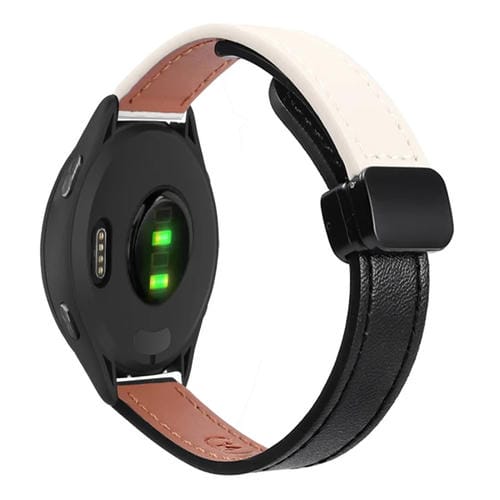 Correa de Reloj Cuero Microfibra con Hebilla Magnética 22mm para Garmin Vivoactive 4 (Negro y Albaricoque)