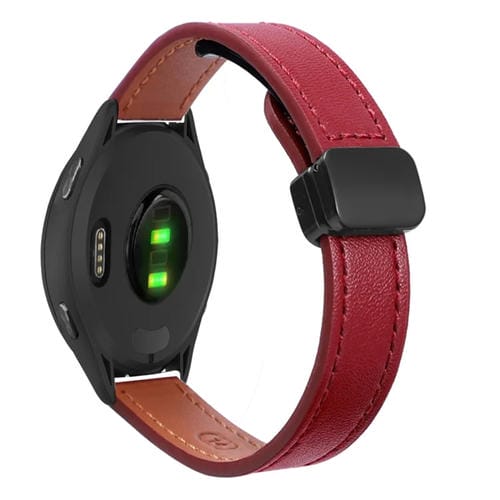 Correa de Reloj Cuero Microfibra con Hebilla Magnética 22mm para Garmin Vivoactive 4 (Rojo Vino)