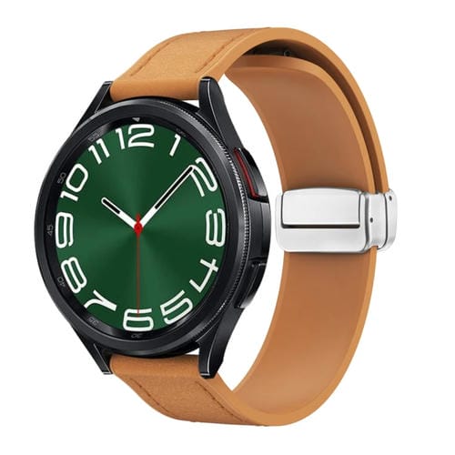 Correa de Reloj de Cuero de Silicona con Hebilla Plateada Magnética 20mm (Marrón Claro)