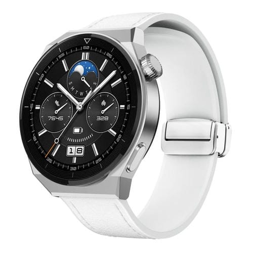 Correa de Reloj de Cuero Silicona 22mm con Hebilla Plateada Magnética (Blanco)