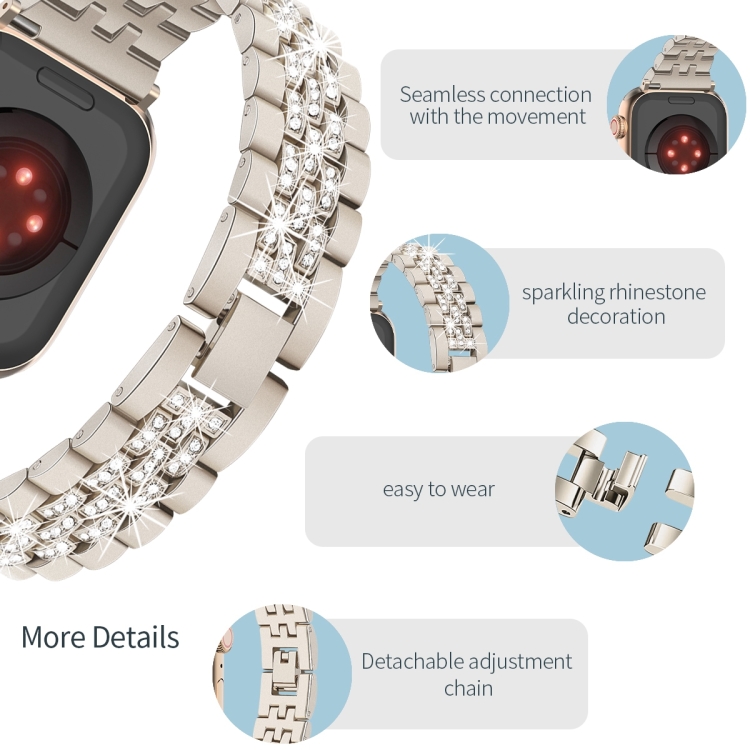 Correa de Reloj Metal con Cadena Diamantes Brillantes 44mm para Apple Watch Se (2023) (Starlight)