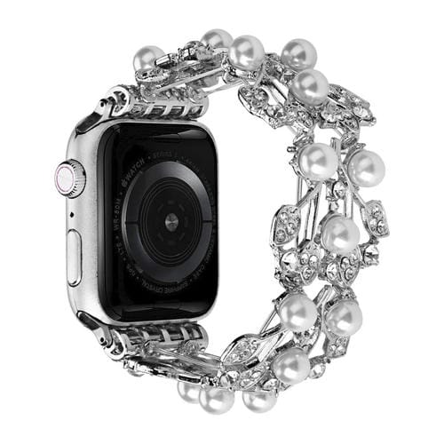 Correa de Reloj Metal con Cuentas de Cuatro Hojas Apple Watch 5 44mm (Plata)