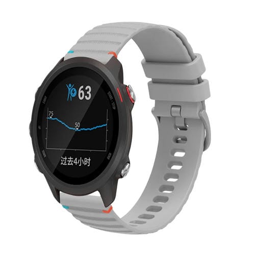 Correa de Reloj Silicona 20mm para Garmin Forerunner 245 Music con Puntadas Onduladas y Puntos (Gris)