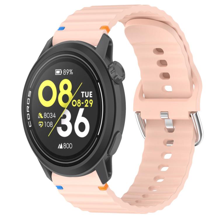 Correa de reloj de silicona de 22 mm con costuras onduladas para COROS Pace 3 (rosa)