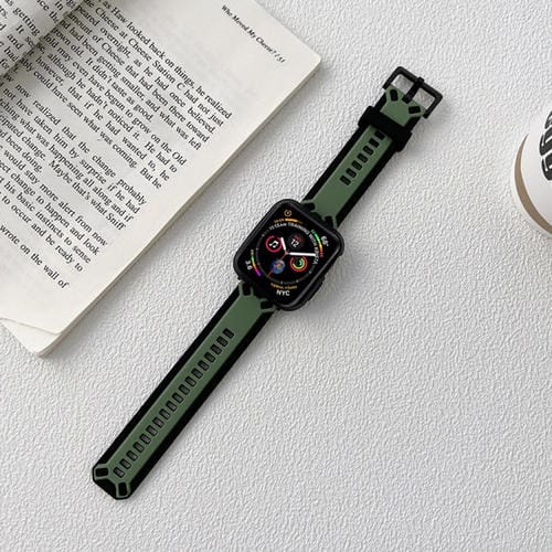 Correa de Reloj TPU Apple Watch Series 8 y 7 41mm y SE 2 6 5 4 40mm y 3 2 1 38mm (Negro Verde Militar)