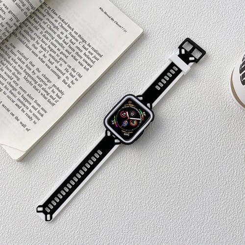 Correa de Reloj TPU para Apple Watch Series 8 y 7 41mm y SE 2, 6, 5, 4 40mm y 3, 2, 1 38mm (Negro y Blanco)