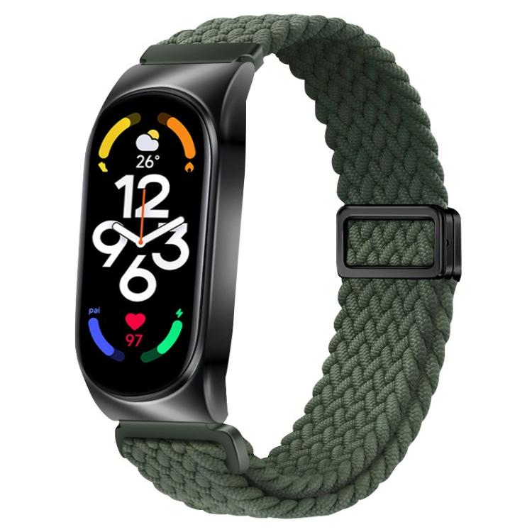 Correa de reloj elástica trenzada de nailon con hebilla magnética y marco de metal para Xiaomi Smart Band 9/8 (verde oliva)