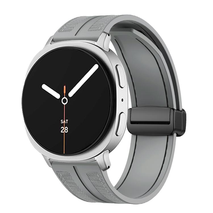 Correa de reloj híbrida de nailon y silicona con hebilla magnética plegable para Samsung Galaxy Watch8/Watch8 Classic (gris)