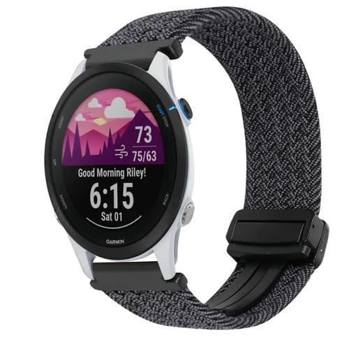 Correa de Reloj Trenzada Garmin Forerunner 255 Music 22mm con Hebilla Magnética (Negro Metálico)