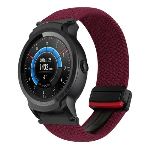 Correa de Reloj Trenzada con Hebilla Magnética 22mm para Ticwatch E2 (Negro, Arena y Rojo)