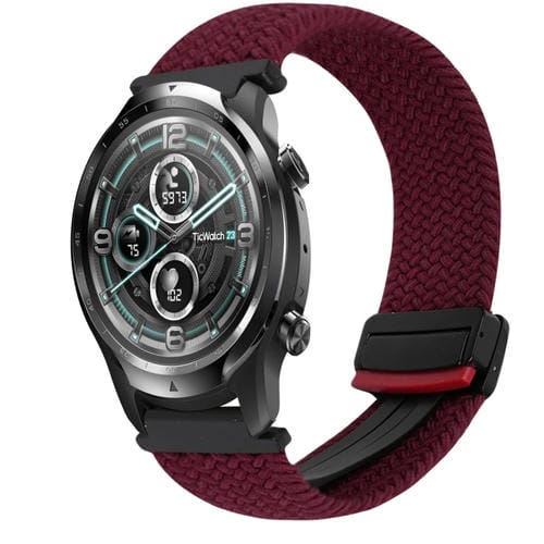 Correa de Reloj Trenzada con Hebilla Magnética 22mm para Ticwatch Pro 2021 (Rojo Vino)