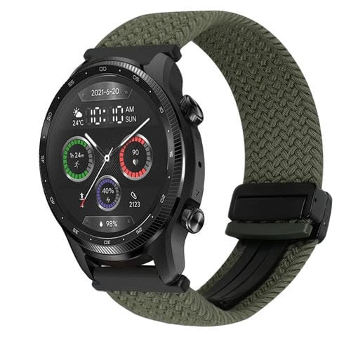 Correa de Reloj Trenzada Ticwatch Pro X 22mm con Hebilla Magnética (Verde Oliva)