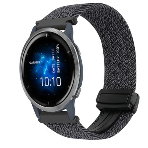 Correa de Reloj trenzada Garmin Venu 2 22mm con hebilla magnética (Negro Metálico)