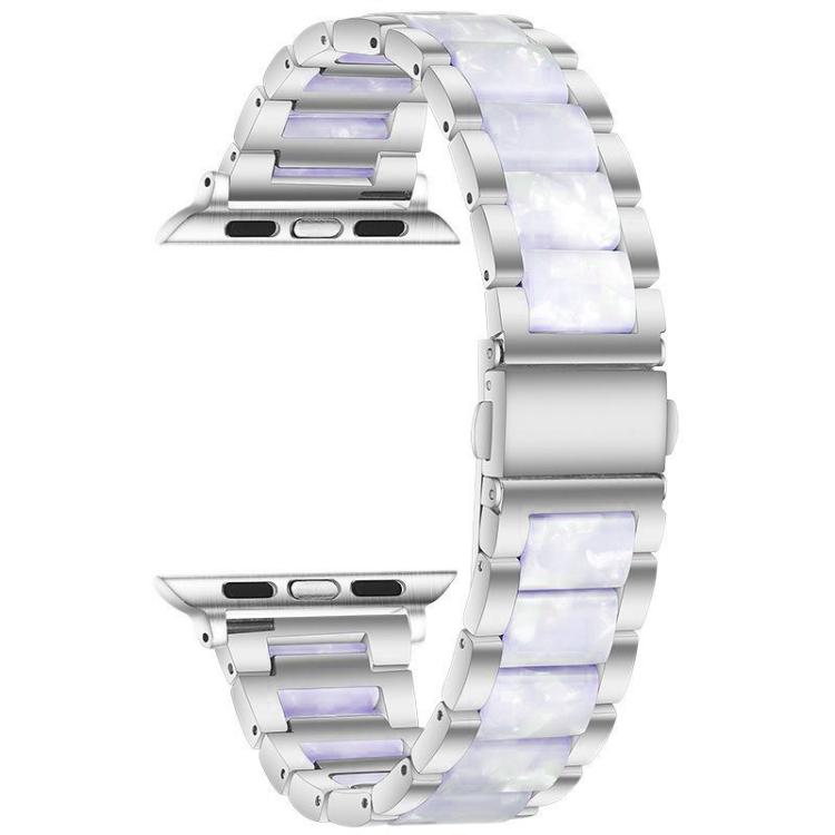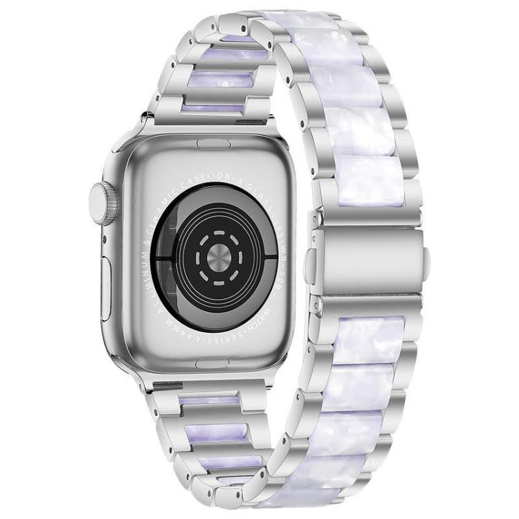 Correa de resina metálica de tres cuentas xDfind para Apple Watch de 42, 44, 45, 46 y 49 mm (plateada y blanca)