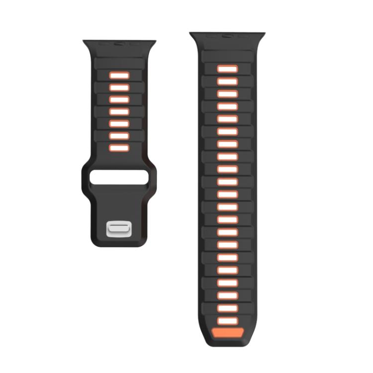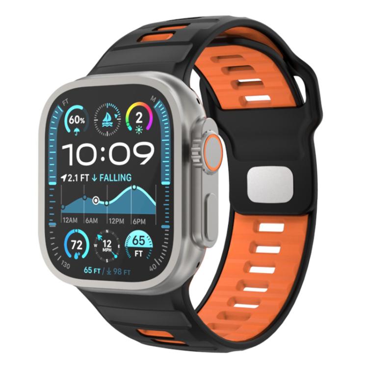 Correa de silicona con hebilla invertida a cuadros para Apple Watch de 46 mm, 49 mm, 45 mm y 44 mm (negro y naranja)