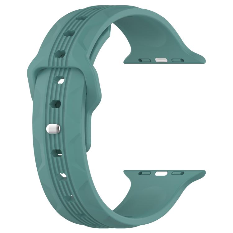 Correa de silicona con hebilla invertida y veta vertical para Apple Watch de 46 mm, 49 mm, 45 mm y 44 mm (verde aguja de pino)
