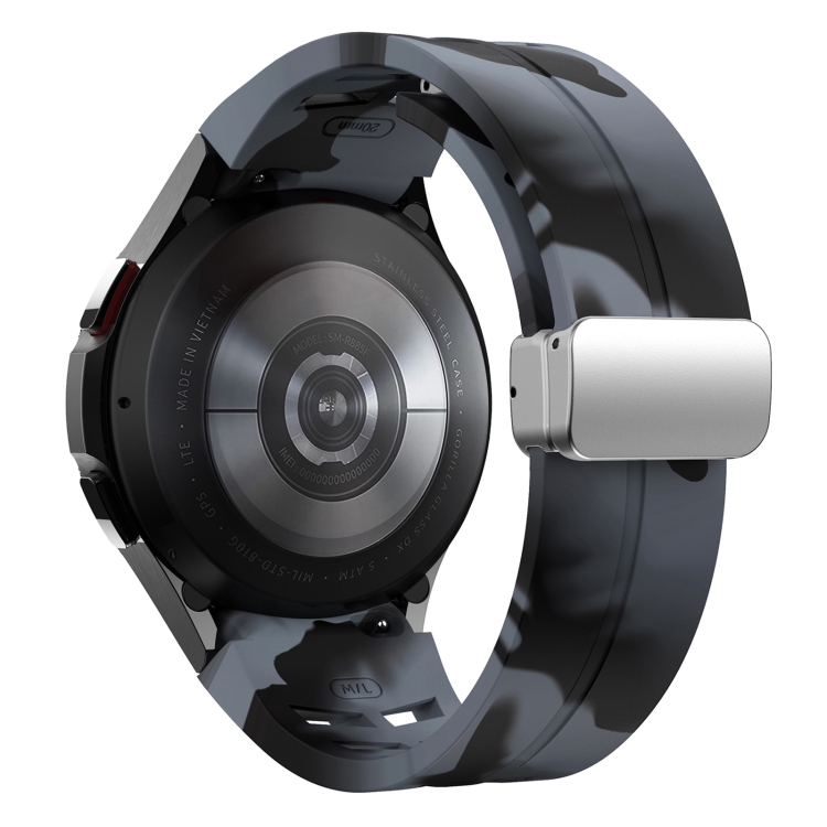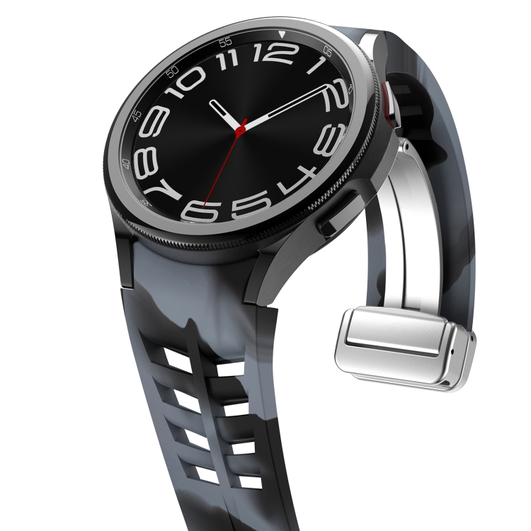 Correa de Silicona Richard para Samsung Galaxy Watch 5 Pro 45mm con Hebilla Plateada y Cierre Magnético (Camuflaje Negro y Gris)
