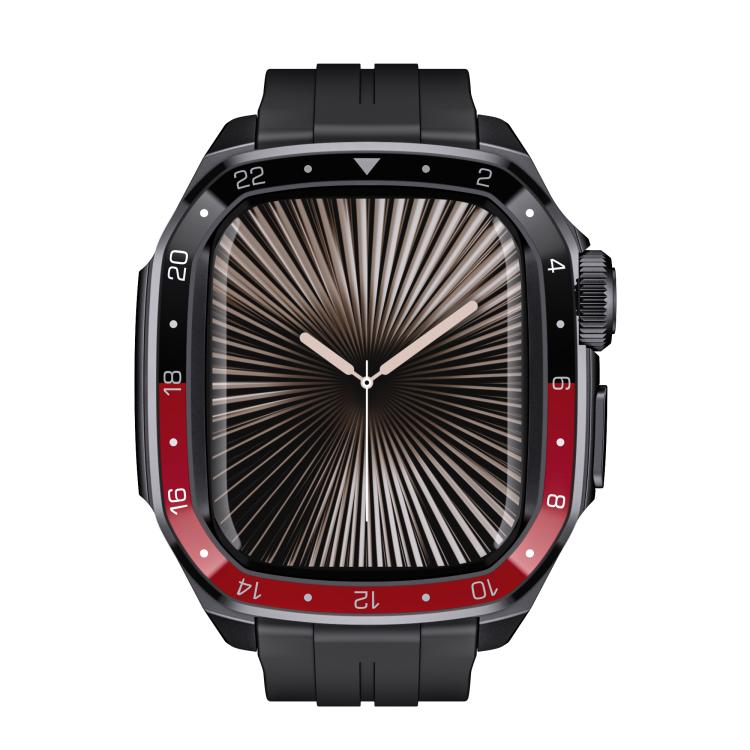 Correa de silicona con marco de metal integrado para Apple Watch Series 10 de 46 mm (marco negro, esfera negra y roja)