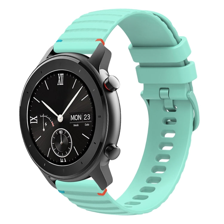 Correa de Silicona 20mm para Reloj Amazfit GTR 42mm con Puntadas Onduladas y Puntos (Verde Azulado)