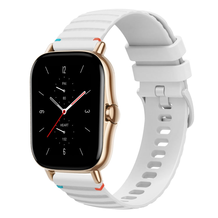 Correa de Silicona para Reloj Amazfit GTS 2 20mm con Puntadas Onduladas y Puntos (Blanca)