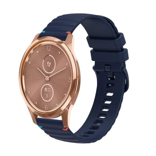 Correa de Silicona para Reloj Garmin Move Luxe 20mm con Puntadas Onduladas y Puntos (Azul Marino)