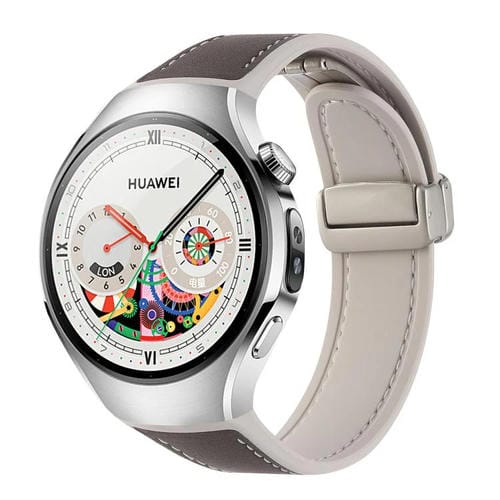 Correa de silicona híbrida de cuero con hebilla magnética para Huawei Watch 5 de 46 mm (marrón napa con textura de estrella)