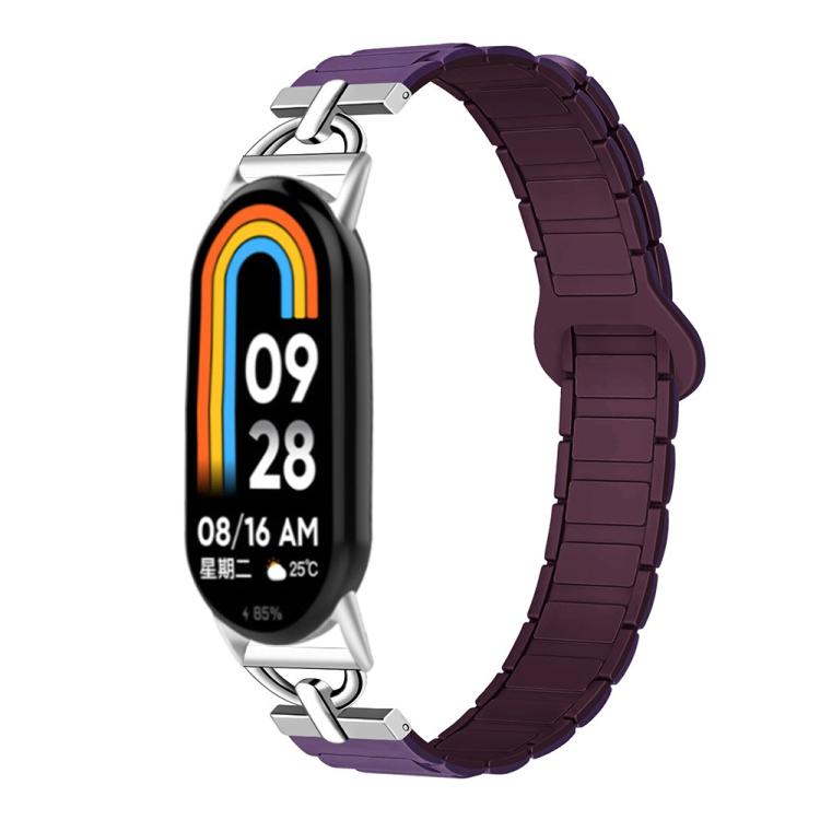 Correa de silicona magnética con tres cuentas en forma de D para Xiaomi Smart Band 10/9/8 (morado ciruela)