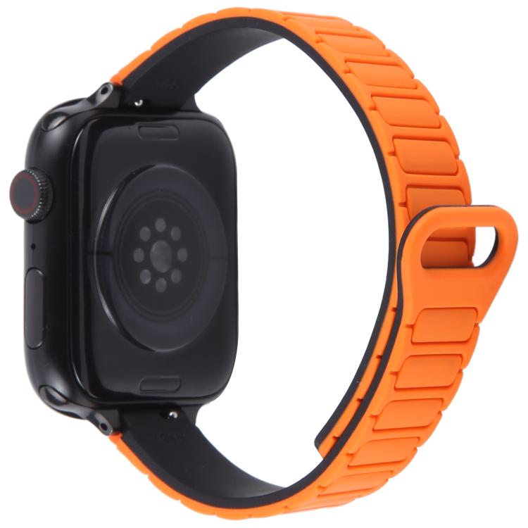 Correa de silicona magnética delgada en forma de I para Apple Watch de 42 mm, 41 mm, 40 mm y 38 mm (negro y naranja)