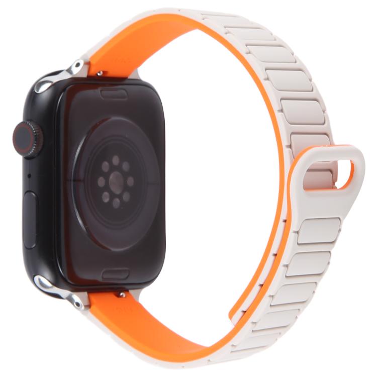 Correa de silicona magnética delgada en forma de I para Apple Watch de 42 mm, 41 mm, 40 mm y 38 mm (plata y naranja estrellado)
