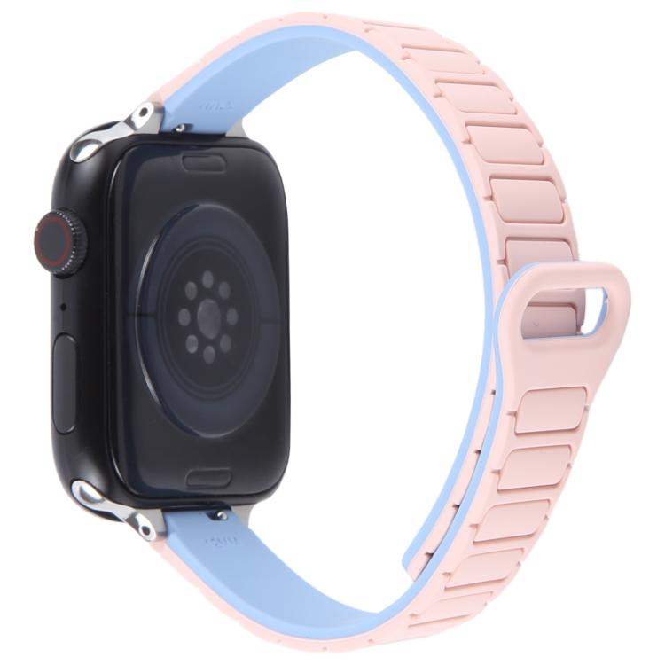 Correa de silicona magnética delgada en forma de I para Apple Watch de 42 mm, 41 mm, 40 mm y 38 mm (plateada y azul rosa)