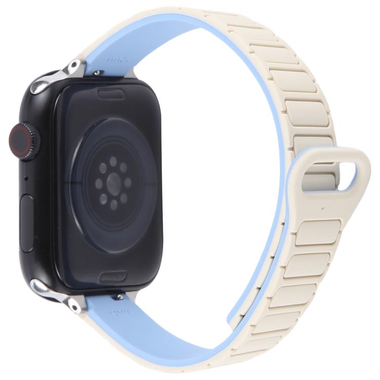Correa de silicona magnética delgada en forma de I para Apple Watch de 42 mm, 41 mm, 40 mm y 38 mm (plateada y azul y blanca)