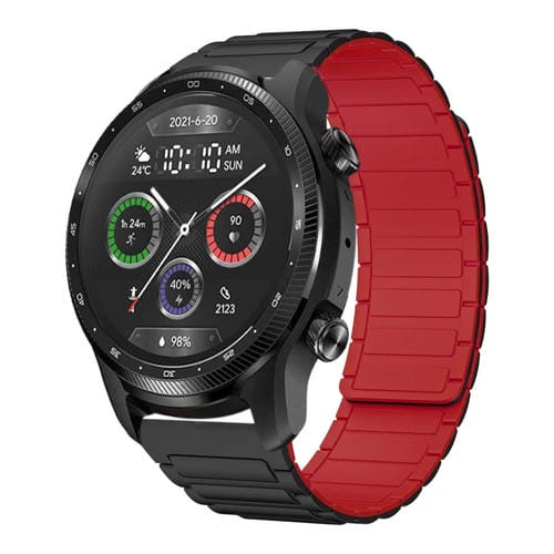 Correa de Silicona Magnética en Forma de I para Reloj Ticwatch Pro X 22mm (Negra y Roja)