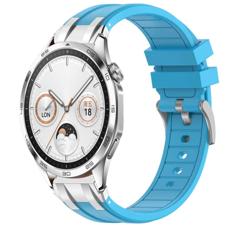 For Huawei Watch GT4 46mm 22mm Silicone Watch Band Strap with Quick Release Silver Buckle (Sky Blue)