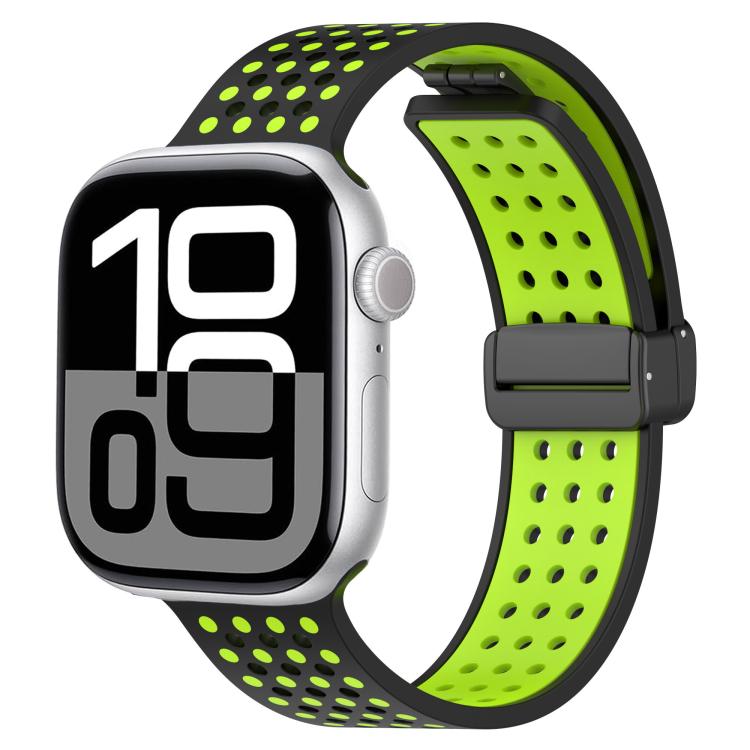 Correa de silicona transpirable con hebilla magnética para Apple Watch de 42 mm, 41 mm, 40 mm y 38 mm (negro lima)