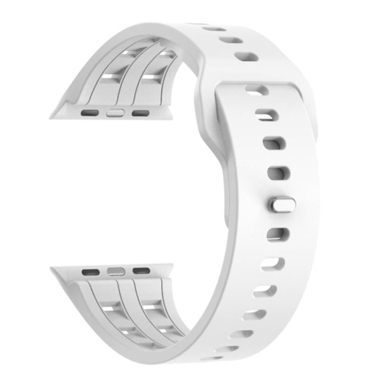 Correa de silicona transpirable de doble fila para Apple Watch de 46 mm, 49 mm, 45 mm y 44 mm (blanca)