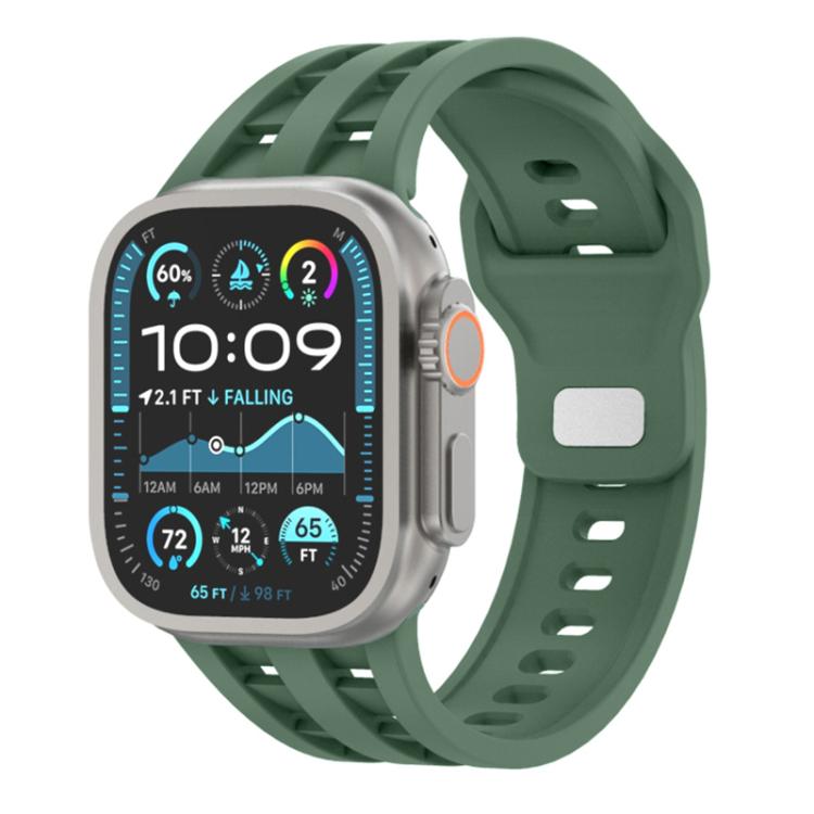 Correa de silicona transpirable de doble fila para Apple Watch de 46 mm, 49 mm, 45 mm y 44 mm (verde militar)
