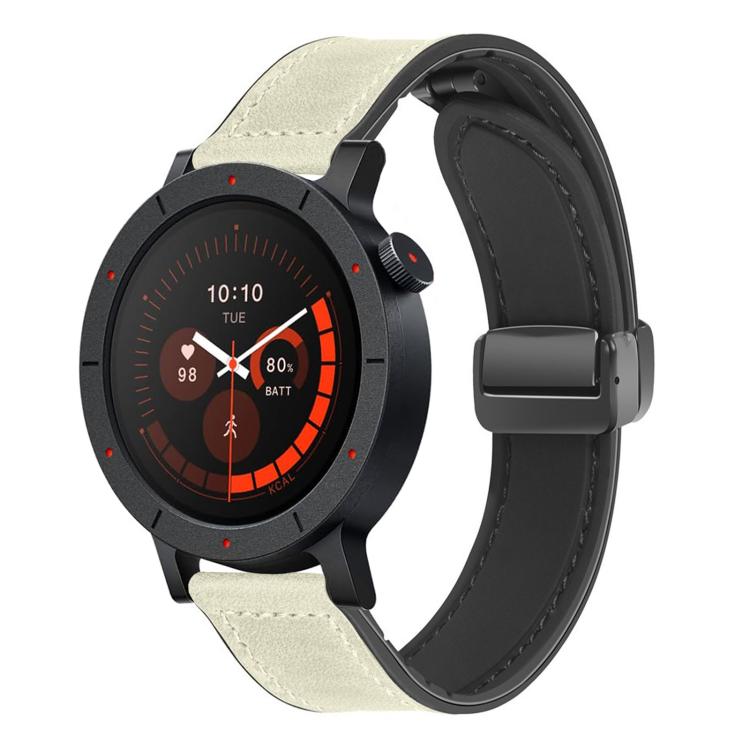 Correa de silicona y cuero con hebilla magnética plegable para CMF Watch 3 Pro (beige)