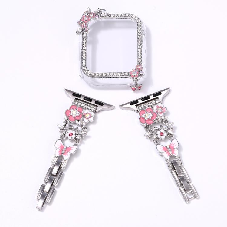 Correa hueca con un solo diamante y diseño de flor de borla para Apple Watch Series 6/5/4 y SE de 40 mm (plateada)