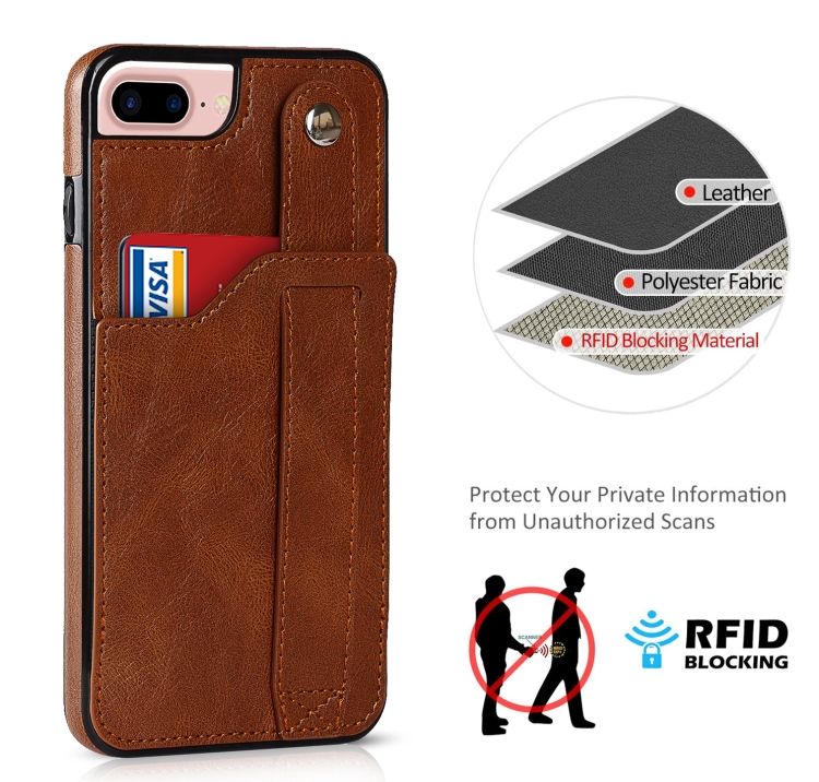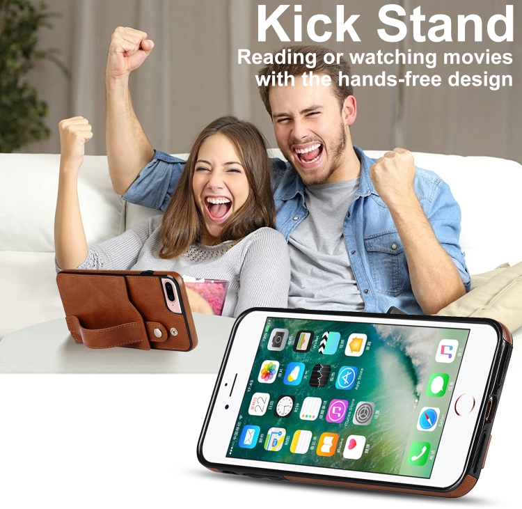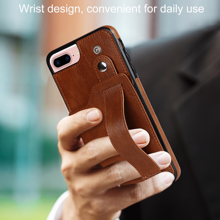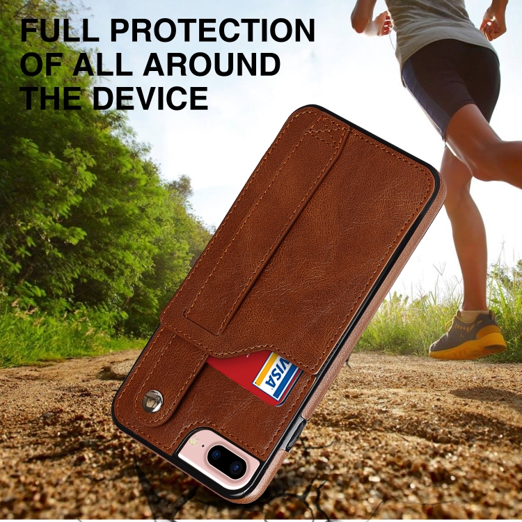 Funda de cuero Crazy Horse Texture TPU para iPhone 7 Plus / 8 Plus con ranura para tarjeta y soporte de correa (Brown)