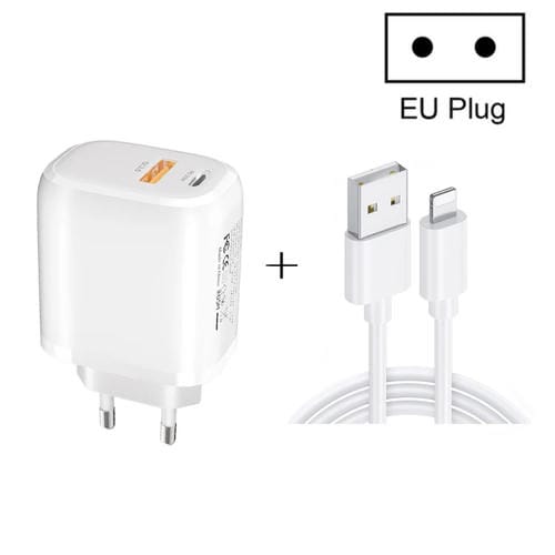 Cargador rápido portátil Cs-20W Pd3.0 + Qc3.0 con puertos dobles y cable USB a 8 pin (UE)
