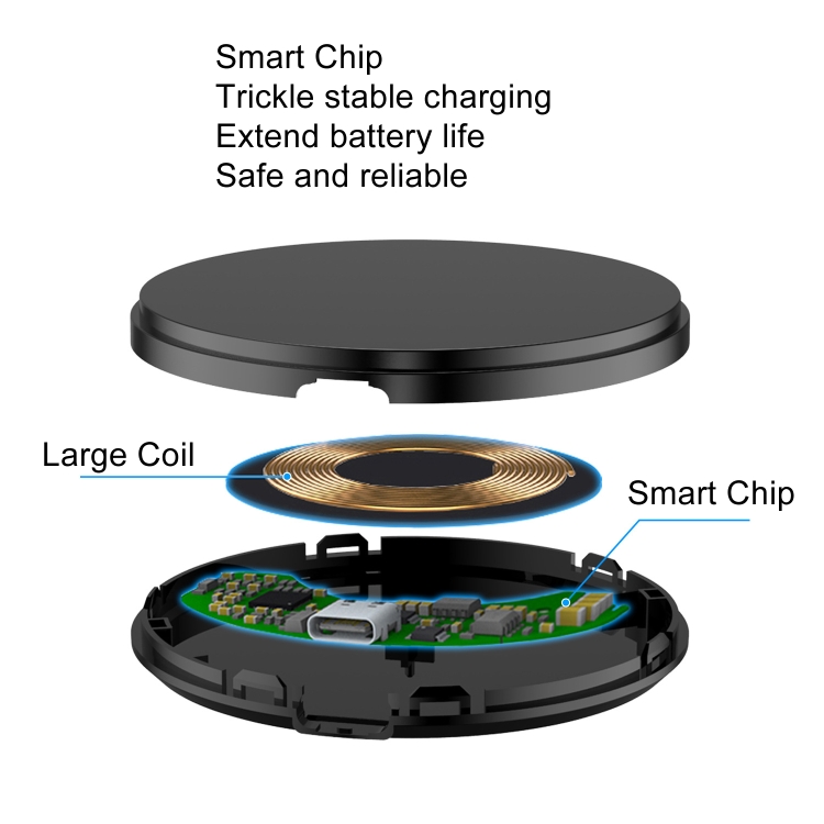Cargador inalámbrico Dsw-36B mini 15W carga rápida Tipo-C redondo Qi