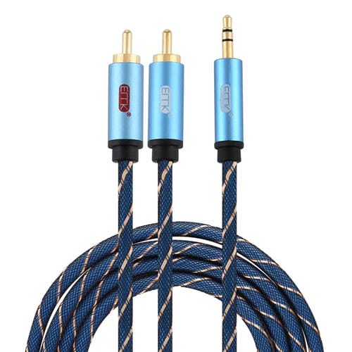 Cable de Audio Emk 3.5Mm Jack Macho a 2 x RCA Macho Chapado en Oro Altavoz 2 m (Azul Oscuro)
