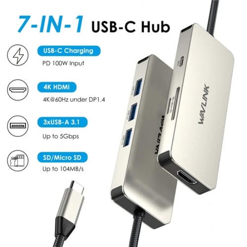 - 1x Estación de Acoplamiento Tipo C Wavlink UHP3416 7 en 1 PD100W con Lector de Tarjetas SD/TF (Azul)