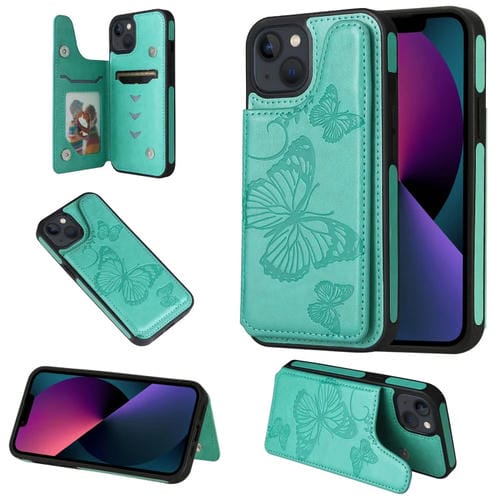 Estuche a Prueba de Golpes Estampado Mariposa para iPhone 13 Mini (Verde)