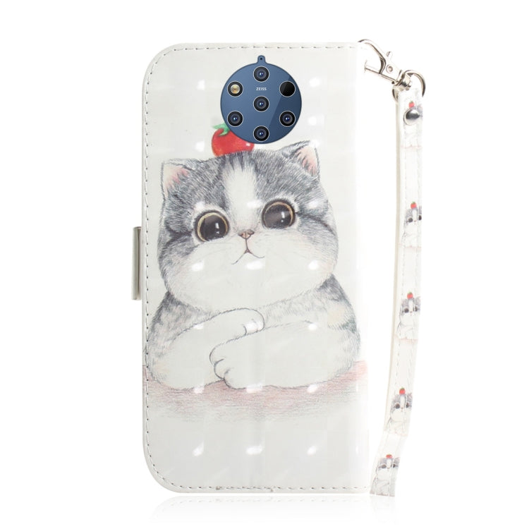 Estuche de Cuero con Tapa Horizontal y Dibujo de Gato 3D para Nokia 9 con Soporte y Ranuras para Tarjetas