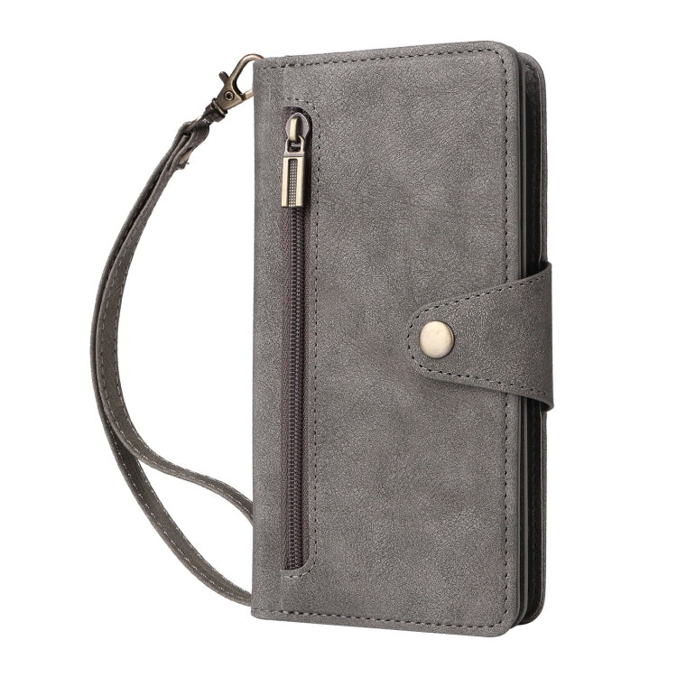 Funda de Cuero para iPhone 16 Pro con Tres Pliegues y Hebilla de Remache (Gris)